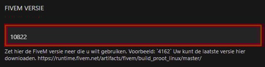 Zet uw gekozen versie in het vakje van FiveM Versie.