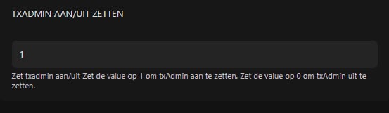 Vervolgens kan u bij TXAdmin aan/uit zetten een 1 invullen