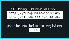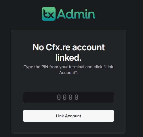 Als u nu terug gaat naar uw console zal u een pincode zien staan die u moet invullen op de website! om uw server te koppelen met TXAdmin.